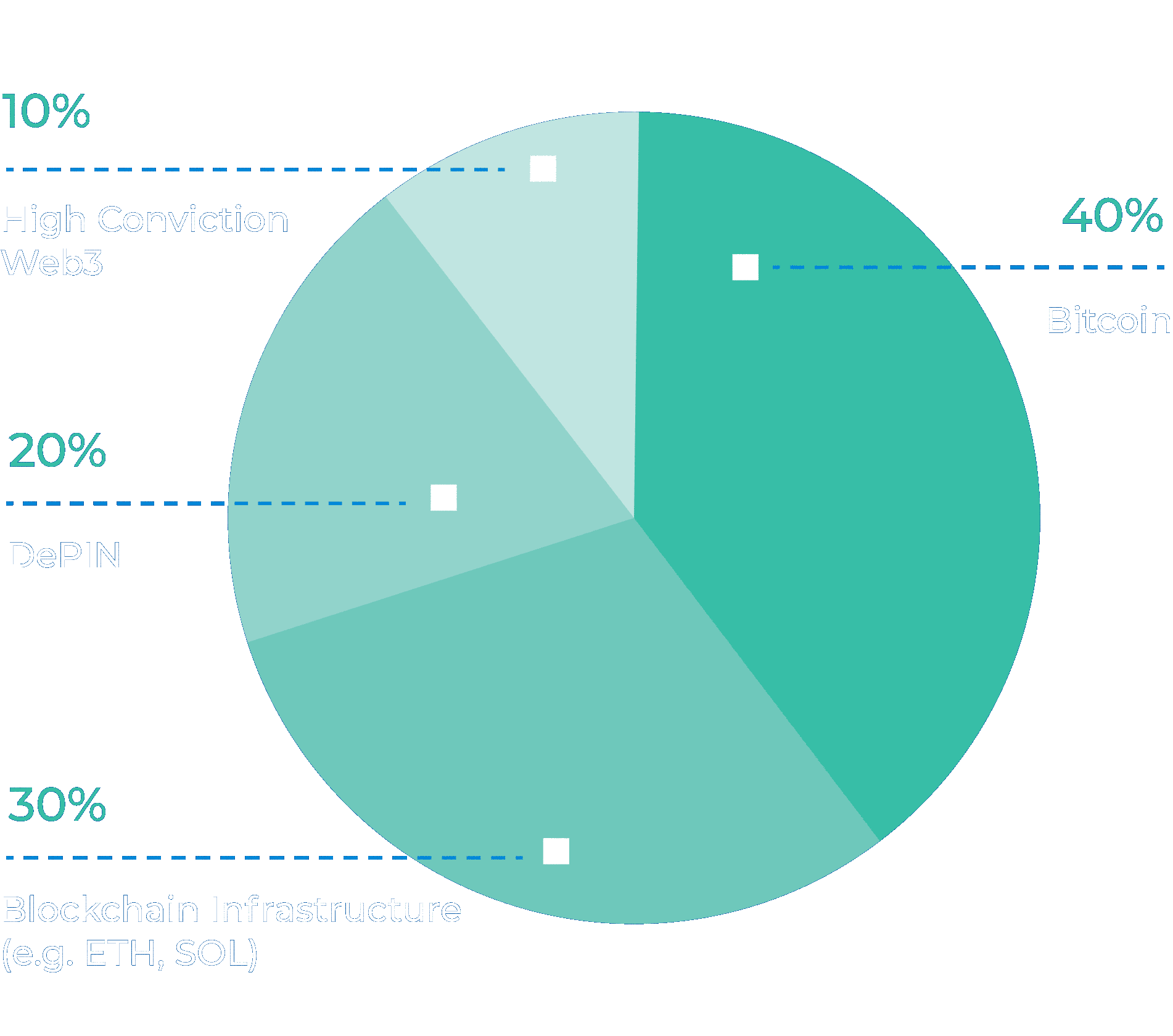 The MTC Fund employs High Conviction, buy and hold, long only investment strategy, holding the best crypto assets that will form the basis of the ecosystem in 10+ years’ time.
