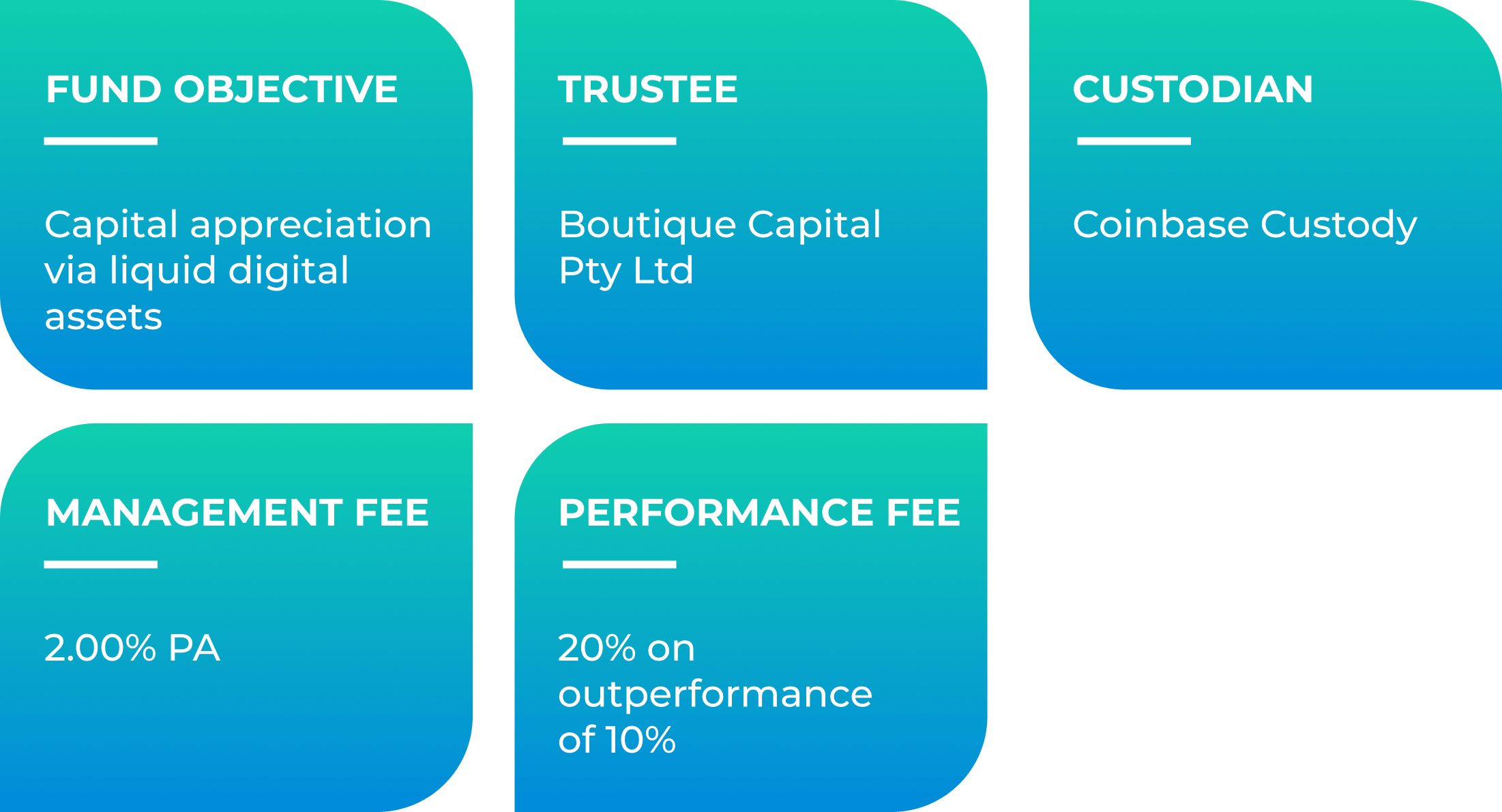 The MTC Fund employs High Conviction, buy and hold, long only investment strategy, holding the best crypto assets that will form the basis of the ecosystem in 10+ years’ time.